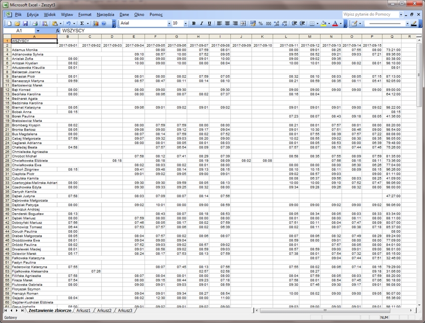 ręczne zdarzeń pochodzących z rejestratorów czasu pracy - korekcję, grupowanie pracowników w działach itd.